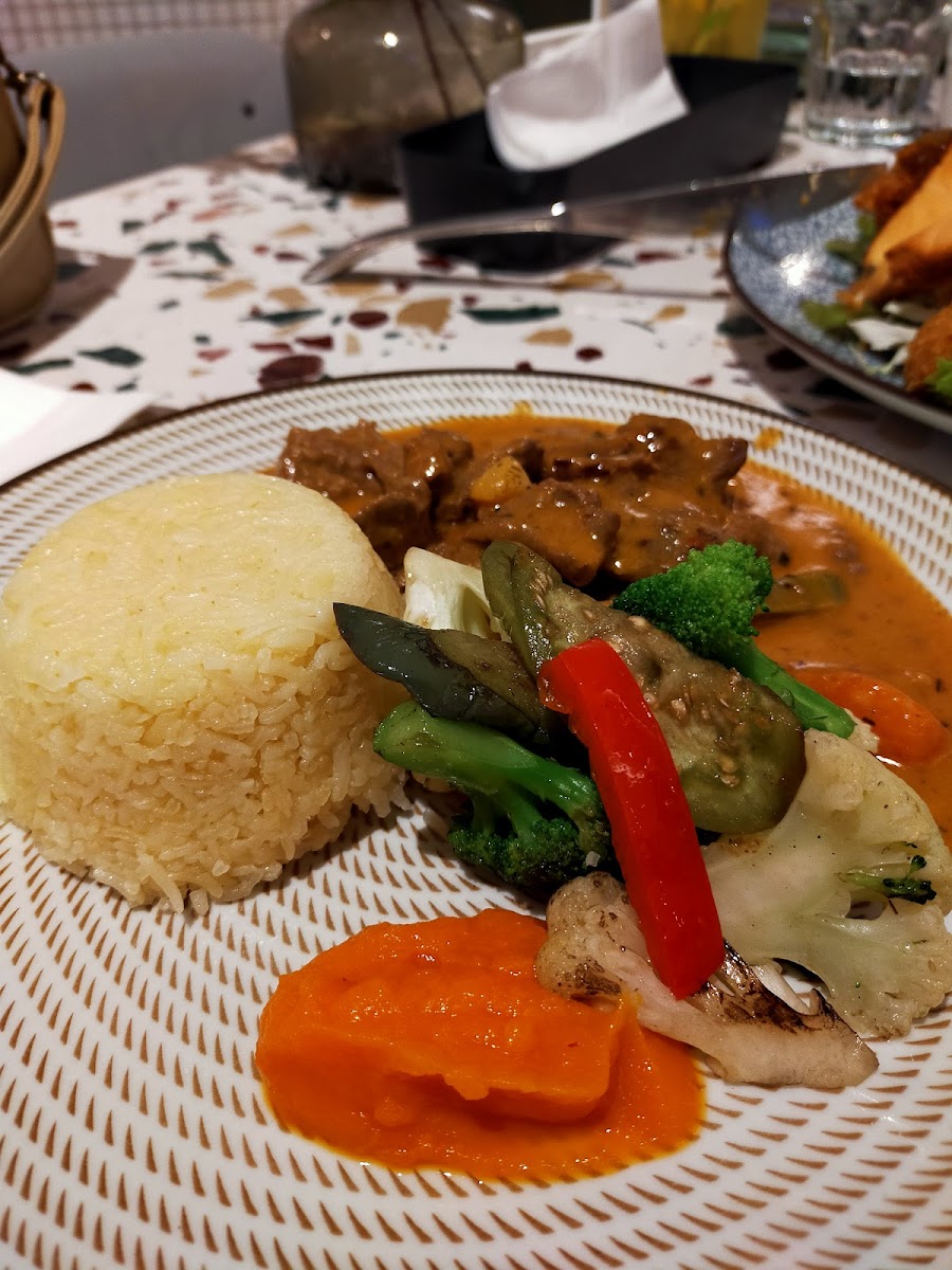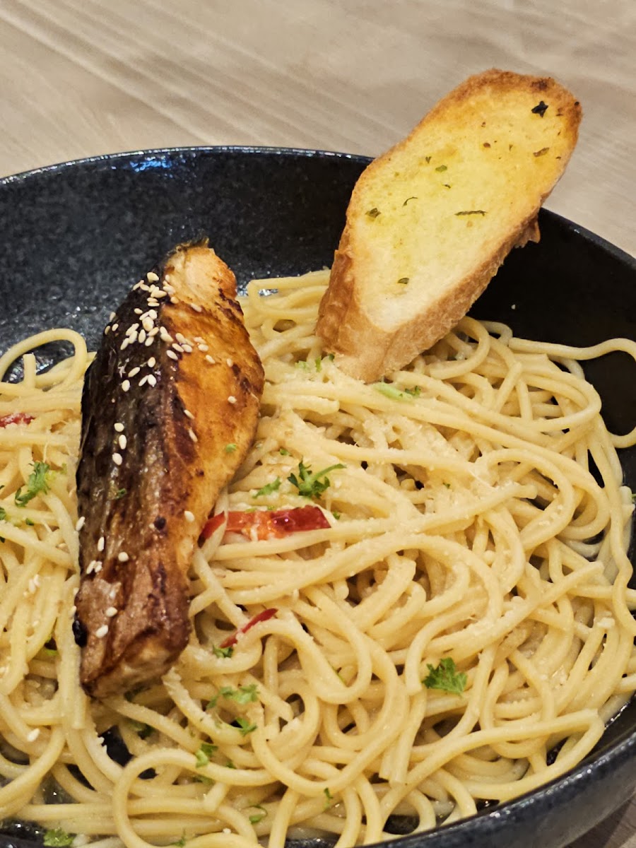 The menu offers a blend of Western and Asian fusion dishes, touching on familiar favorites alongside interesting combos — like espresso beef paired with peach salsa — lending an unexpected twist to everyday flavors. Crowd-pleasers include items like beef rendang served with mixed vegetables, grilled salmon aglio olio, and pulut hitam with pandan ice cream for dessert, reflecting a diverse and thoughtful selection. Portions tend to be generous, appealing to those who appreciate a hearty meal without fuss.